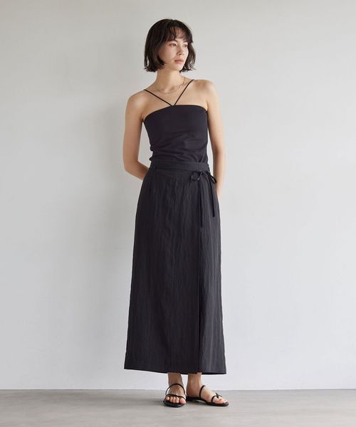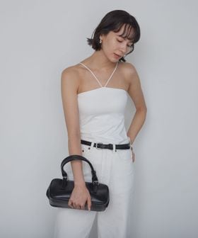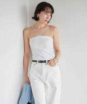 スタイリングのアクセントになるホルターネック型で、鮮度のある着こなしに◎
