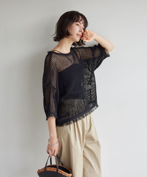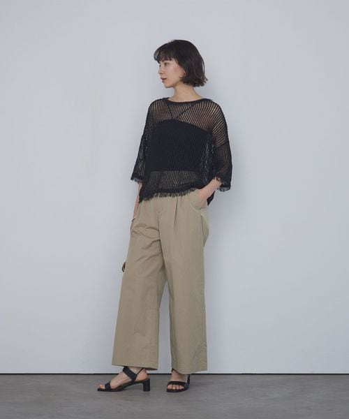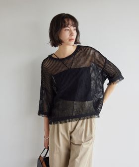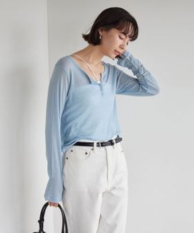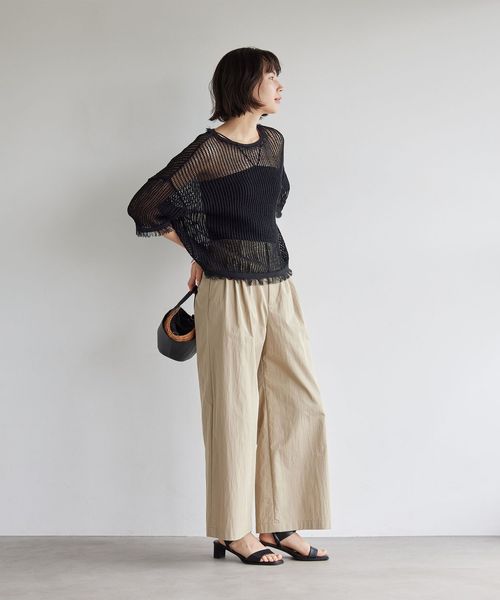 ボディ部分は生地を二重にした仕立てで透けにくく、身体のラインを拾いすぎないため、一枚でも安心して着用いただけます。