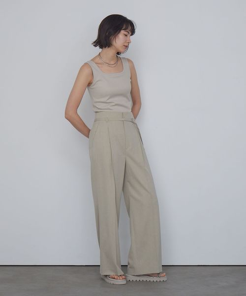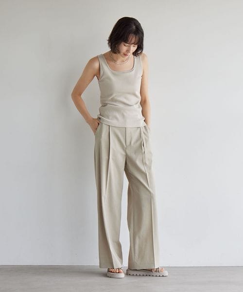 デコルテを美しく見せるスクエアネックで大人な抜け感をプラス。