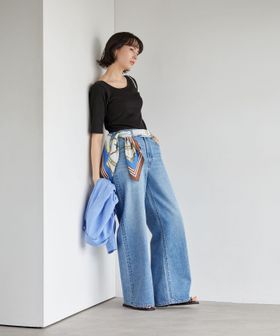 シンプルながらもスタイリングにモードな表情を添えてくれる一枚です。