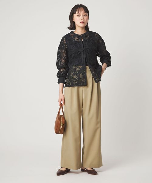 フロントのリボンデザイン×レースが大人フェミニンな一着。