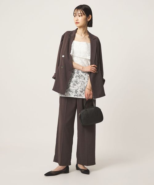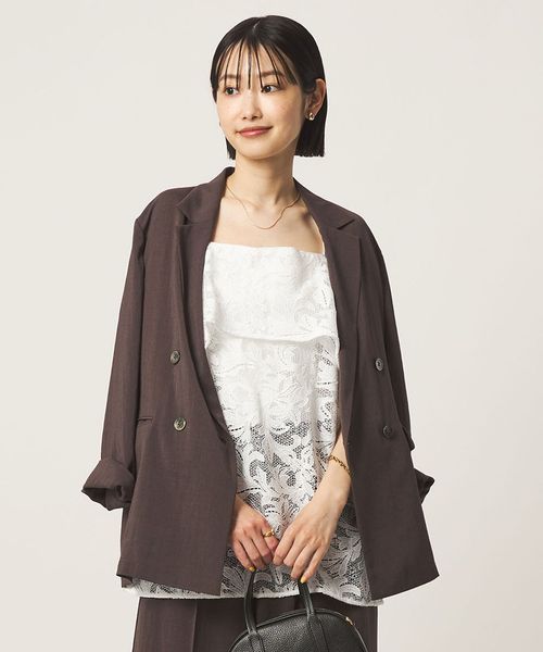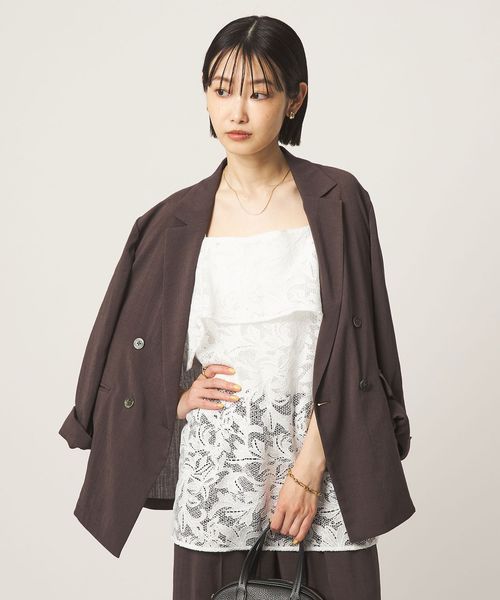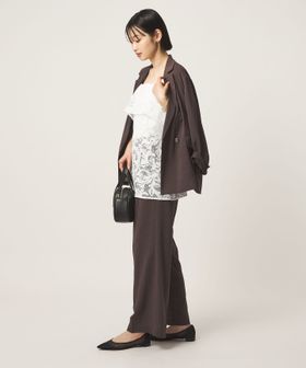 身頃部分を折り返したレイヤードデザインがポイントで、レースの透け感が着こなしに軽やかさをプラスします。