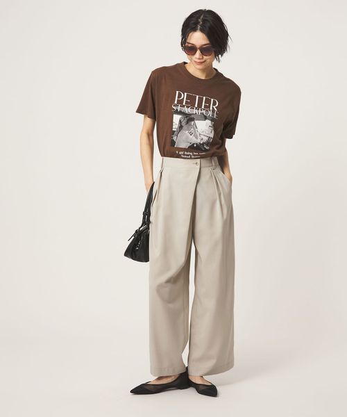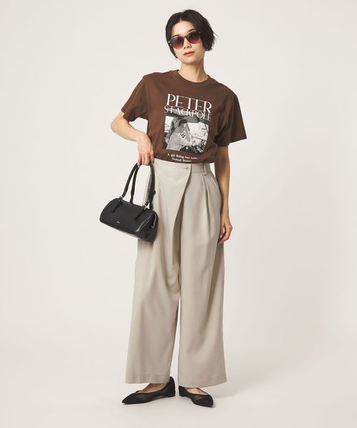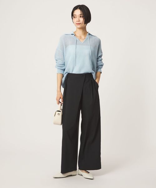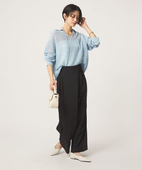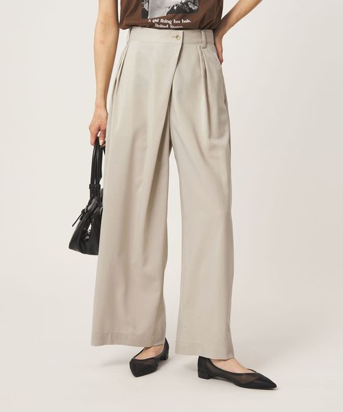 フロントにラップ風のデザインを施した、モード感漂うワイドパンツ。