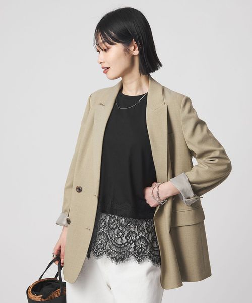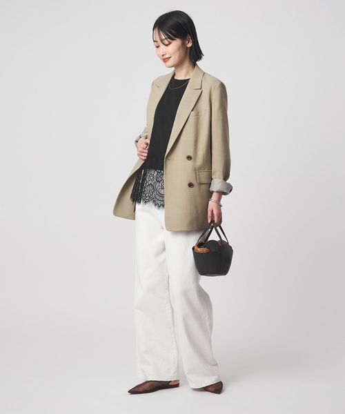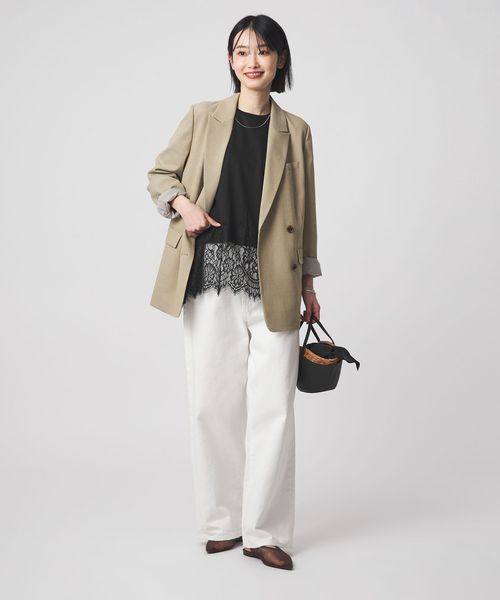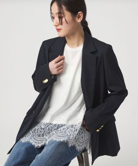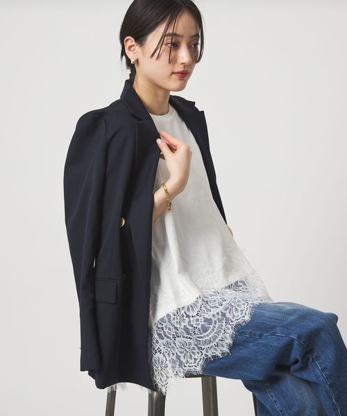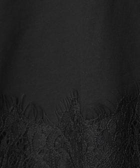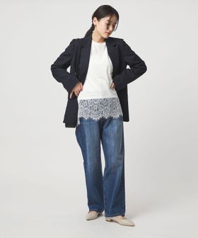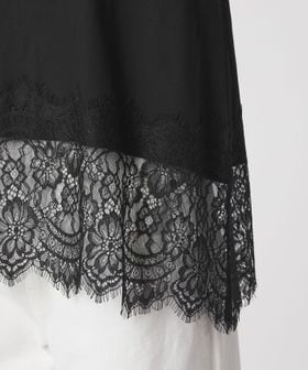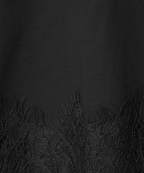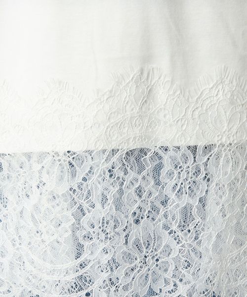 裾にあしらわれた繊細なレースが、シンプルなスタイリングに上品な華やかさを添える一枚。
