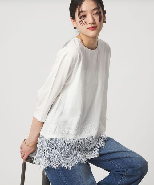 一枚でもレイヤードでも、着映えする裾レースのカットソー