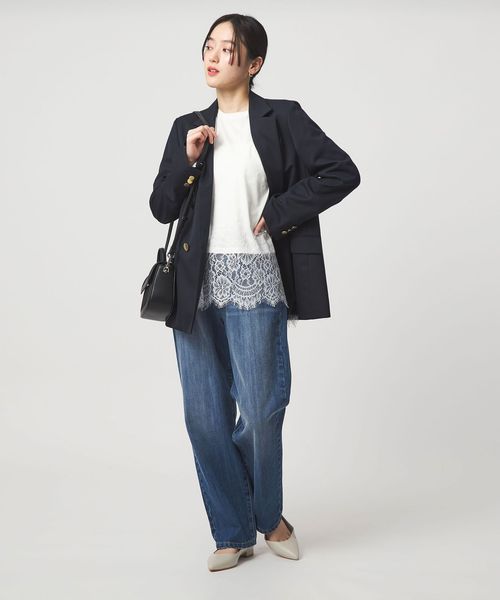 デニムとジャケットを合わせるだけで、レディな雰囲気をプラス。