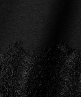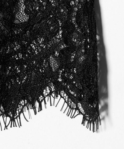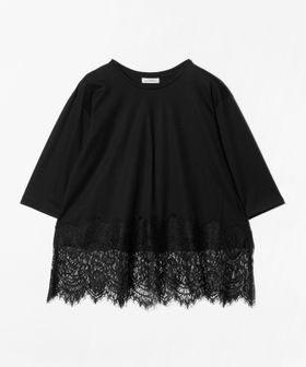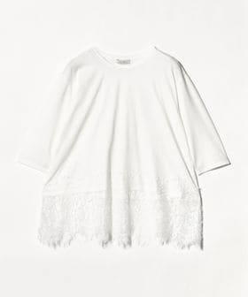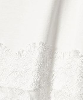 裾にあしらわれた繊細なレースが、シンプルなスタイリングに上品な華やかさを添える一枚。
