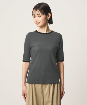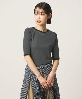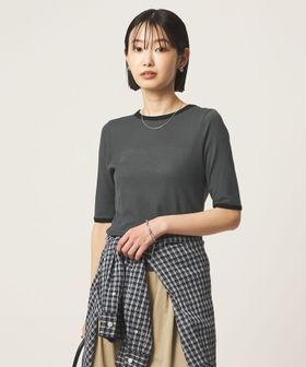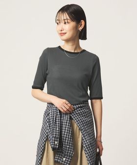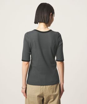 ネックラインと袖口に配色を効かせた、リンガーTシャツ。