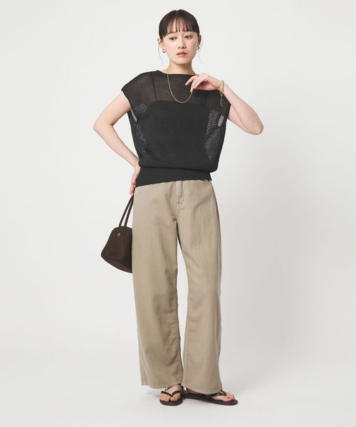 ざっくりとした透け感が軽やかに映え、季節にぴったりの抜け感を演出。
