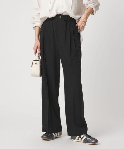 股上を高めに設定することで、脚をすらりと美しく見せるワイドシルエットに仕上げました。