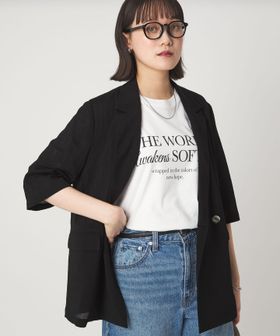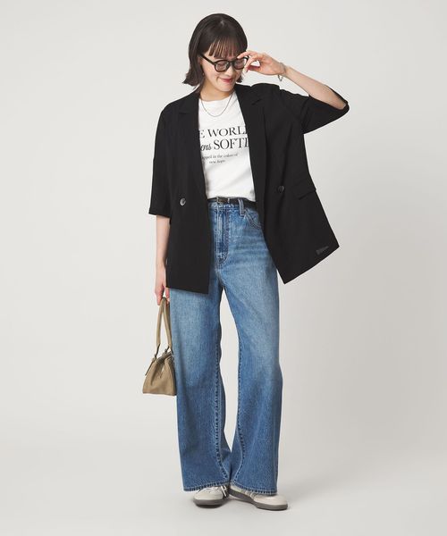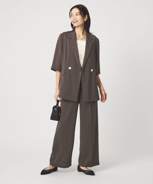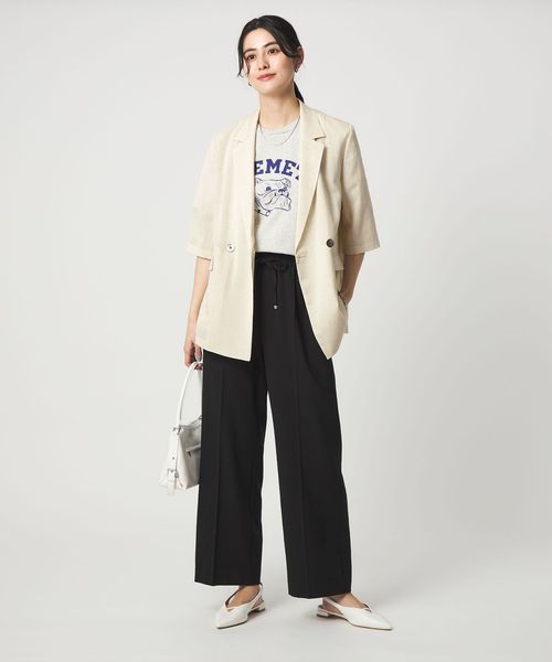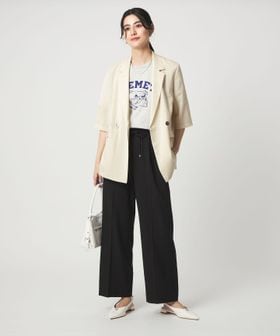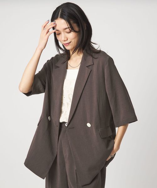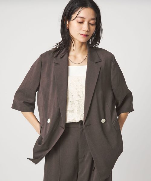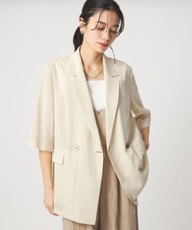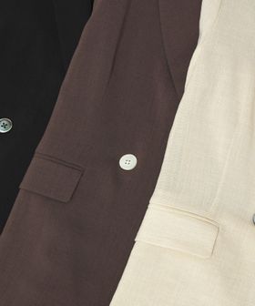 マニッシュなダブルジャケットを2ボタン仕様で、軽やかさと今っぽい表情をプラス。