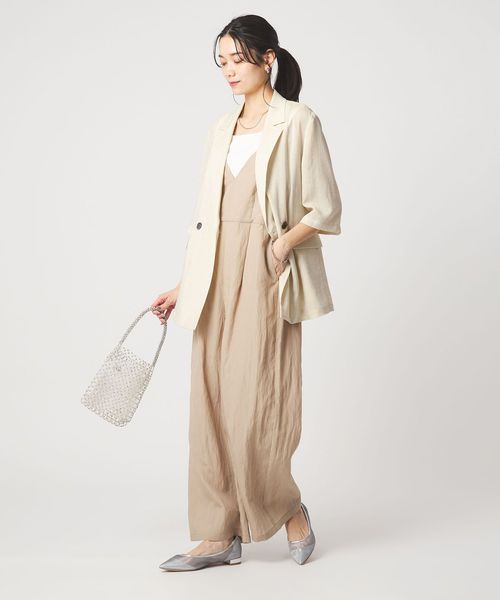ワンピースやオールインワンと合わせたこなれ感のある着こなしも◎