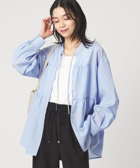 前開き仕様のため、ブラウスとしてはもちろん羽織りとしても使えて汎用性が高いのも◎
