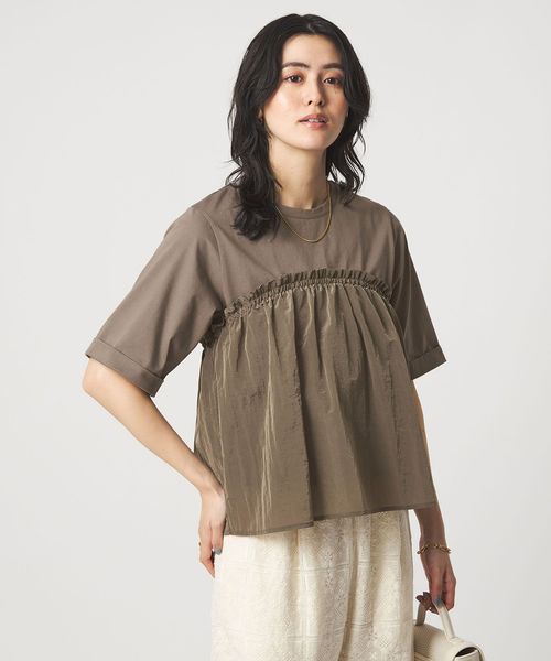 ビスチェ風デザインに異素材をドッキングさせた、一枚で着映えするプルオーバー。