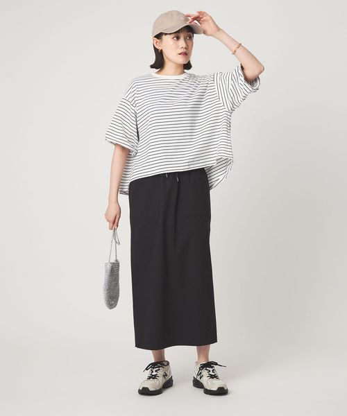 ワイドパンツやタイトスカートなどさまざまなボトムと好相性。