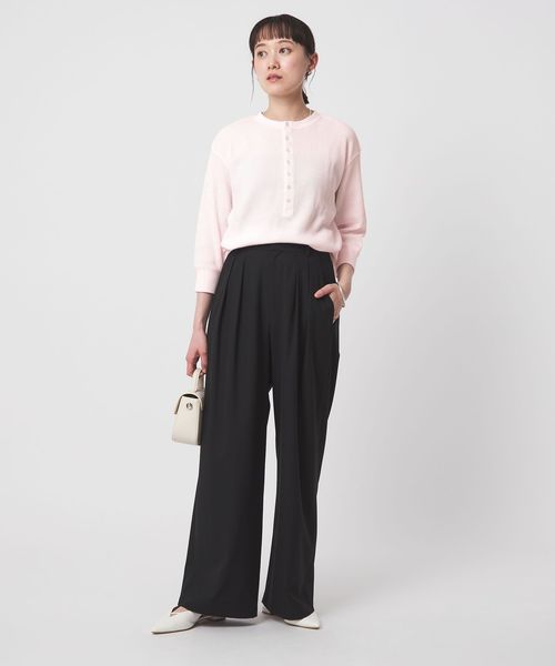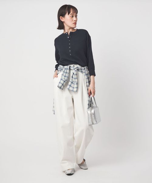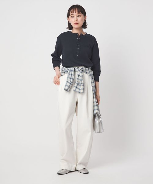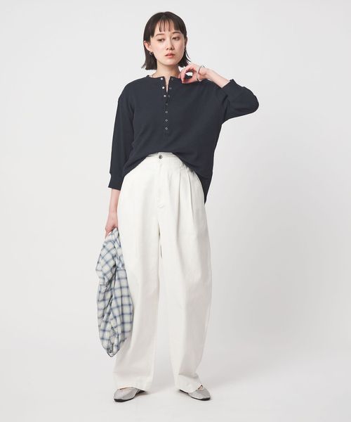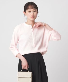 【WEB限定】<at ease>ワッフル ヘンリーネック 5分袖 カットソー