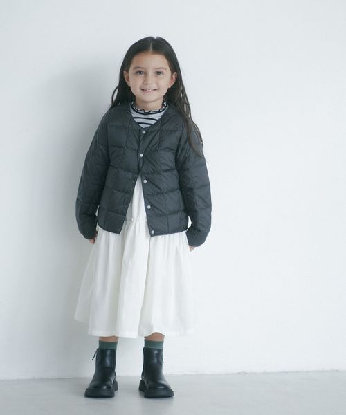 TAION KIDS LINEの定番インナーダウンは、お子様に着せやすい前たてボタン仕様。