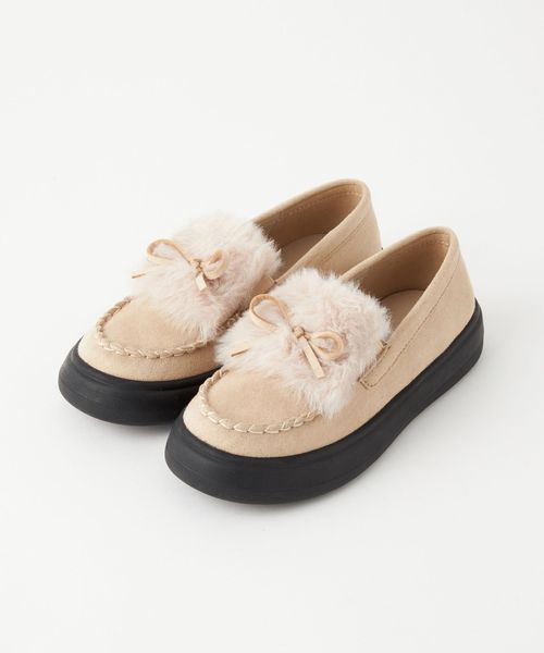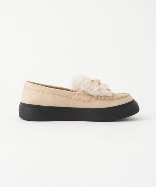 フェイクファーのキルトに、今年らしくボリュームを持たせたソールが印象的なモカシンシューズ。