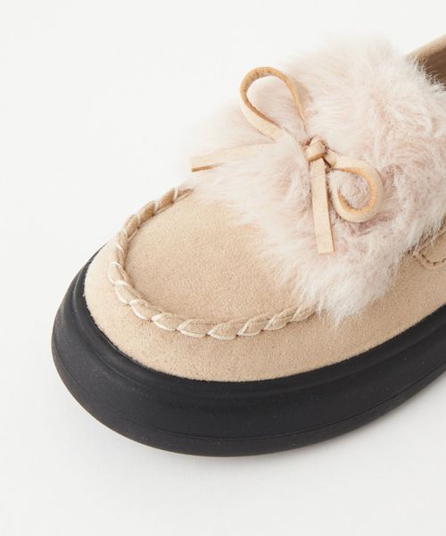 フェイクファーのキルトとボリュームソールが足元を彩るモカシンシューズ