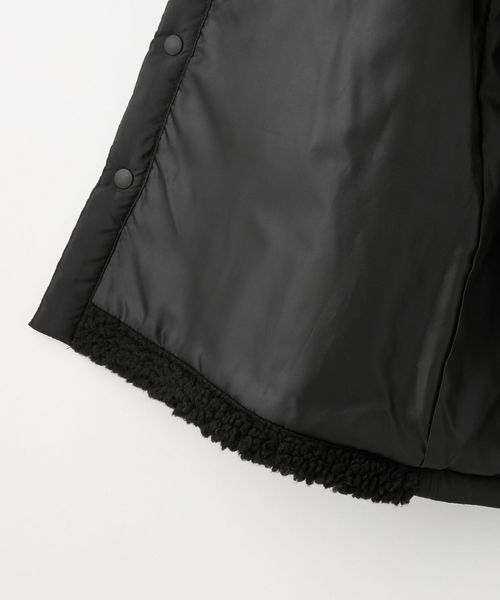 フロントはボア、バックスタイルは縦にステッチが入った中わたキルトで切り替えた、異素材のコンビがポイントのコート。