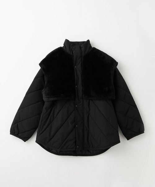 フェイクファーのベストを重ねているような今年らしいデザインのブルゾン。