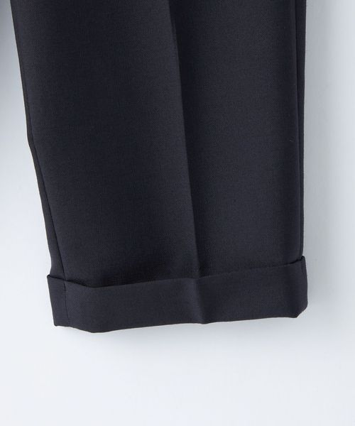 スタンダードな無地のネイビーパンツはさまざまな着こなしが楽しめます。