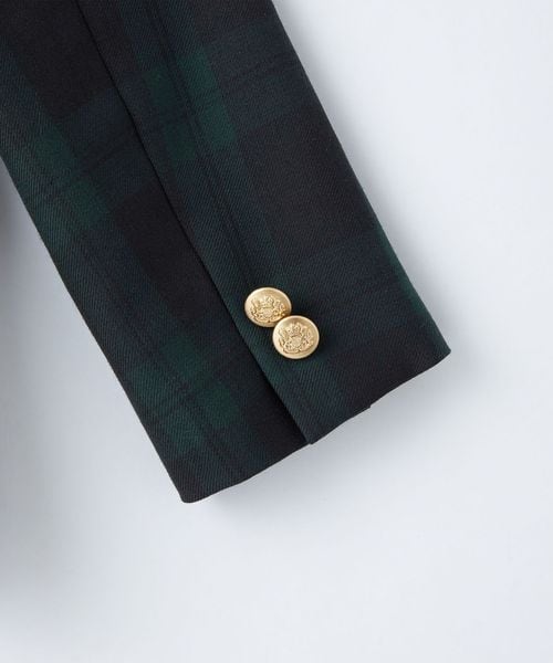 ブラックウォッチ柄に金ボタンをあしらったジャケットは、英国トラッドを連想させる堂々とした風格です。