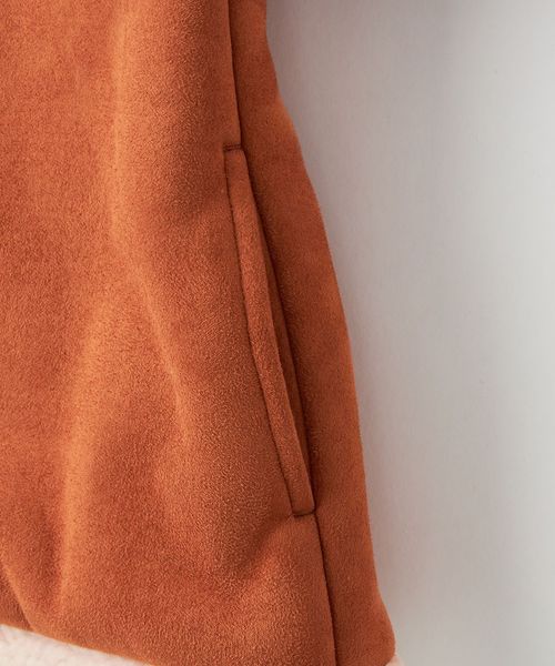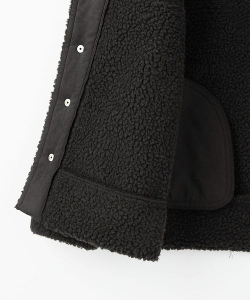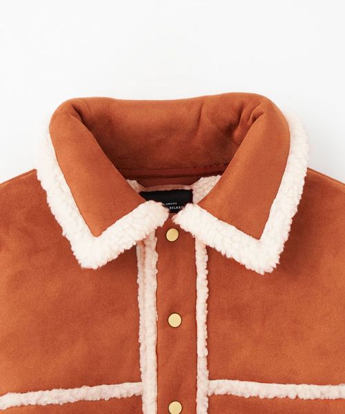 カジュアルに着られるフェイクムートンのシャツ型ブルゾン。