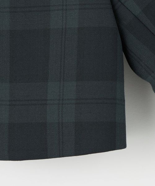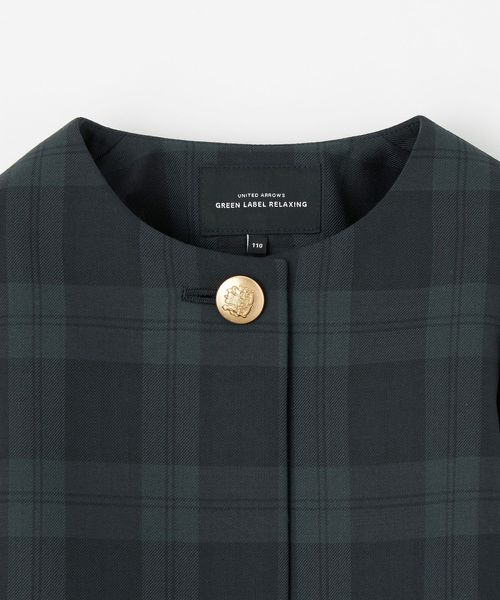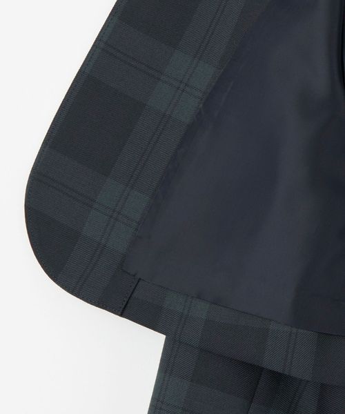 ブラックウォッチの柄に映える金ボタンが華やか。