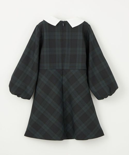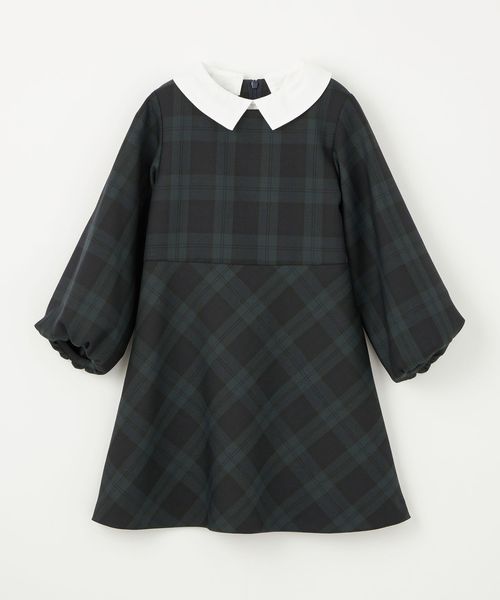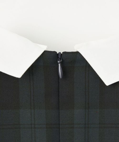 高めのウエスト位置で切り替えたフレアなシルエットに清楚な白襟が、より一層ブラックウォッチの柄を引き立ててくれます。