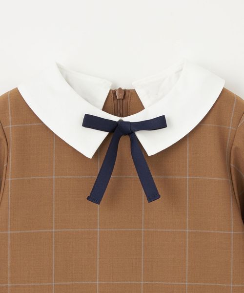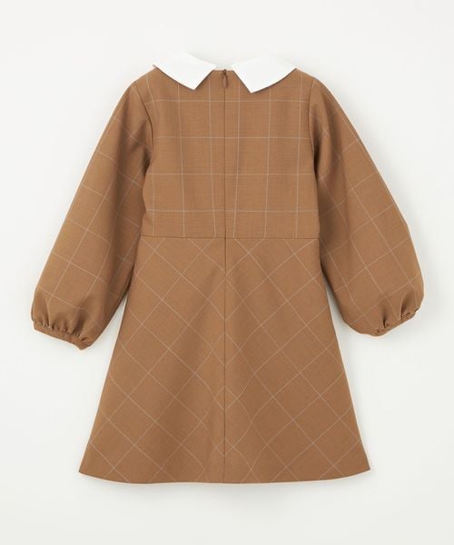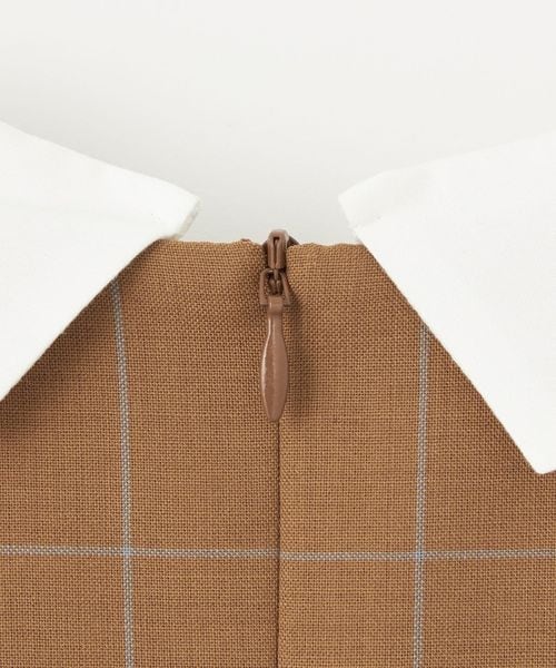 高めのウエスト位置で切り替えたフレアなシルエットに清楚な白襟が、より一層ウィンドペンの柄を引き立ててくれます。