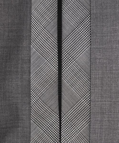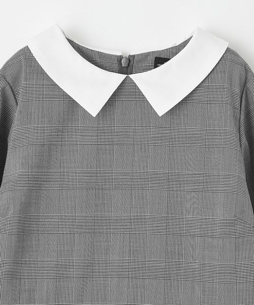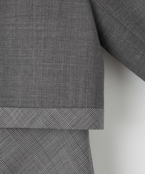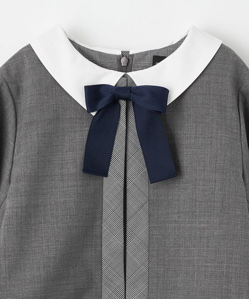 ボレロは明るいグレーのカラーにワンピースと同じグレンチェックで縁取り、襟元に取り外し可能なリボンをつけて華やかさを演出。