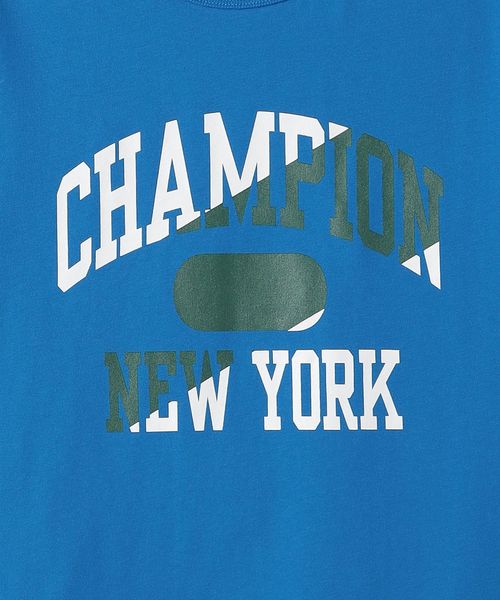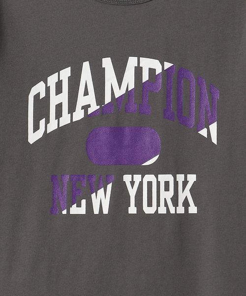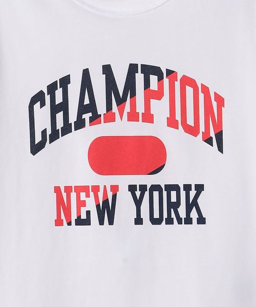 胸のプリントはChampionブランドと親和性の高いカレッジ風グラフィックを現代に落とし込んだもので「CHAMPION」とアメリカの地名を組み合わせたデザインです。