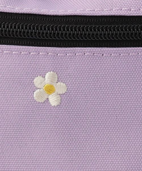 ライラックをベースに、フラワーの刺しゅうを施したボディバッグ。