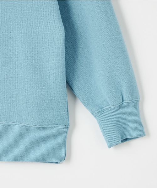 ボディはドロップショルダーでゆったりとしたシルエットにこだわった、着心地のよい裏毛素材。