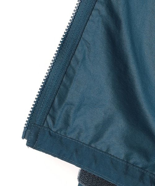 フードはスナップボタンで取り外しが可能で、外したときにはボタンを襟の中にしまうことができます。