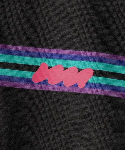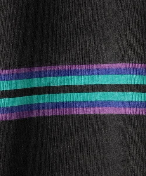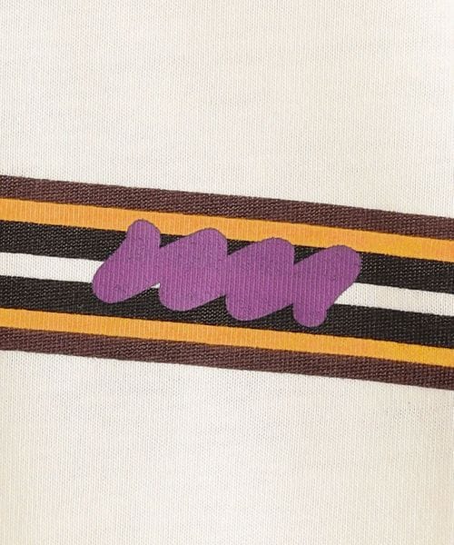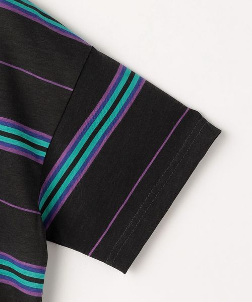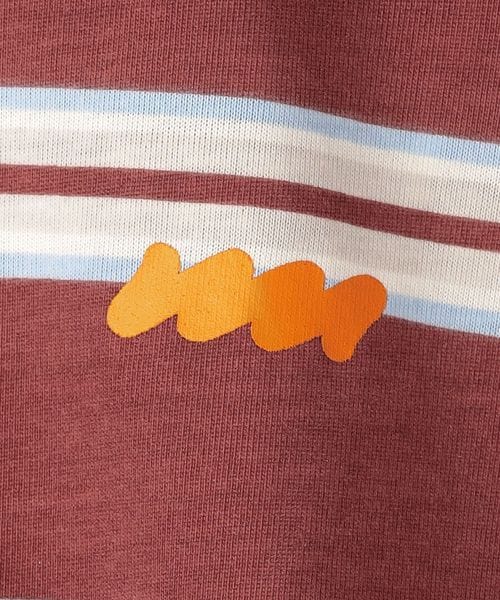 ランダムボーダーに、胸のワンポイントプリントが目をひくTシャツ。