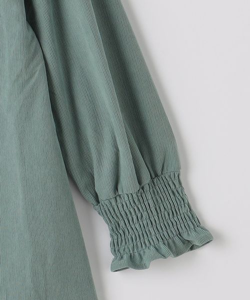 袖のシャーリングデザインがポイントのシャツワンピース。