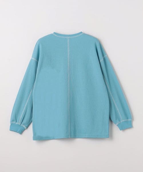目をひくカラーリングと、配色のステッチがかわいい、ハニカム素材のプルオーバー。