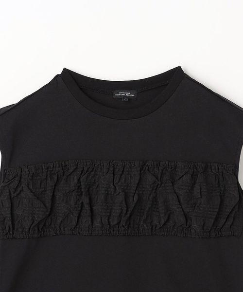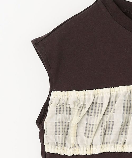 無地をベースにフロントにシアーなチェックを施したノースリーブトップス。