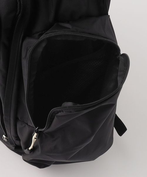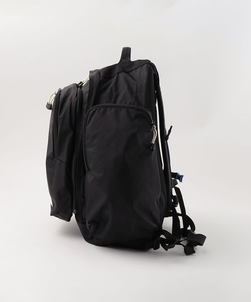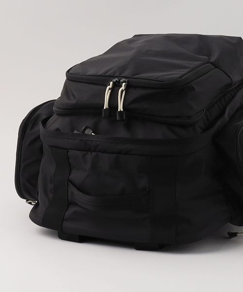 メインへのアクセスには、大きく開閉するU字型ファスナーを採用し、両サイドに荷物の仕分けに便利な大型の収納スペースを設けています。