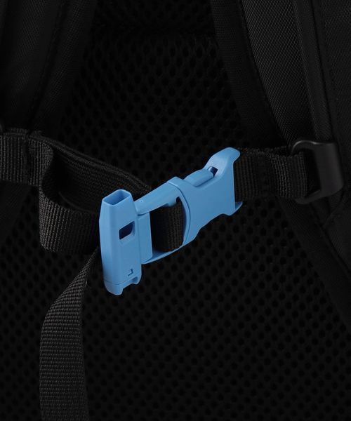 デイパックはファスナーで容易に脱着可能。安全性を考慮し、一定の荷重で自動開放するチェストストラップ付き。