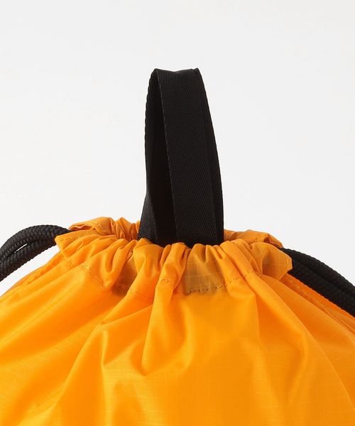 細い背負いひもが付き、ナップサックとしても使うことができる軽量のスタッフサック(リュック)。