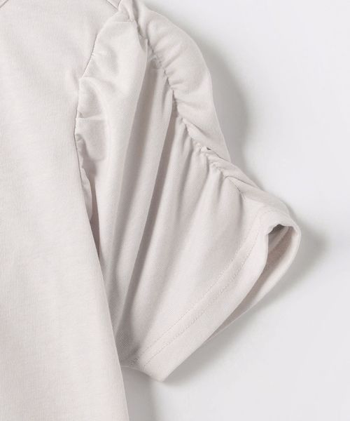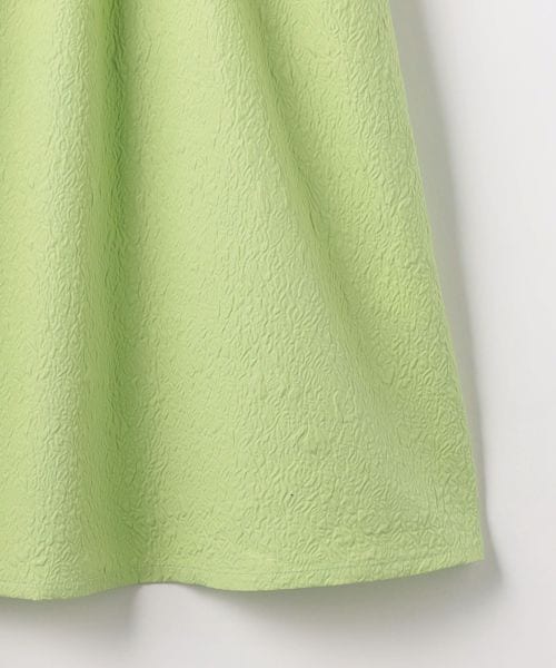 表面に特徴のある素材感が可愛らしいワンピ―スに、袖にギャザーを寄せたTシャツがセットになっており、セットでの着用はもちろん、別々で着用しても素敵。