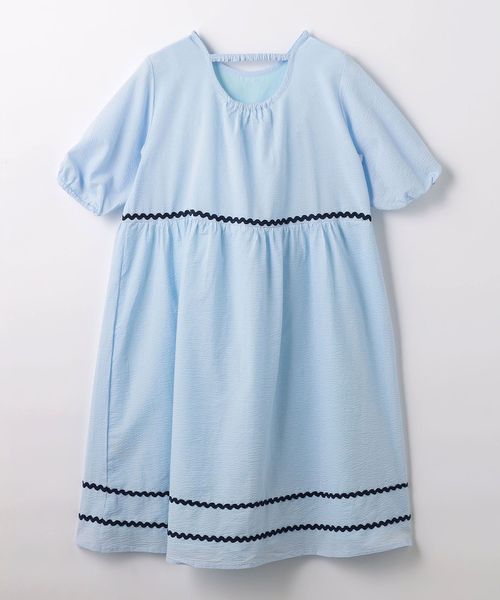 波型の配色テープとさわやかな素材感が見た目にも涼しいワンピース。