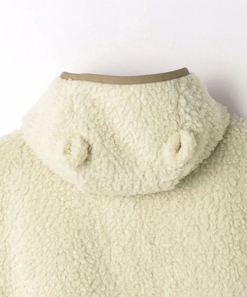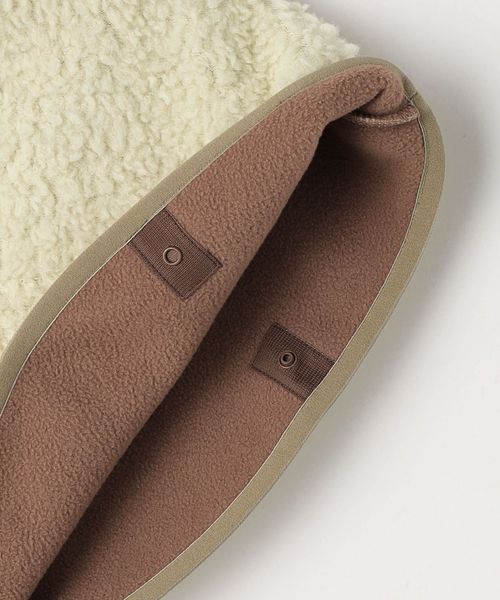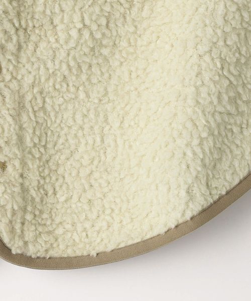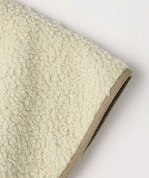表面にはかさ高がある毛足の長いボアフリース、肌面には滑らかな肌触りのマイクロフリースをボンディングした生地を採用しています。