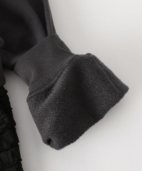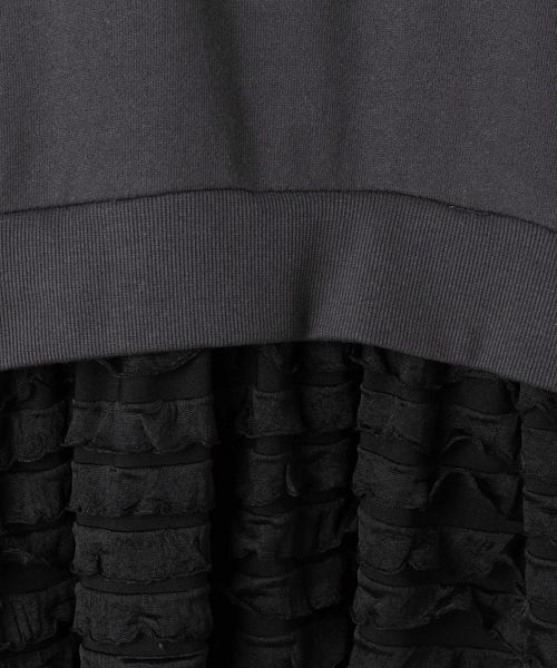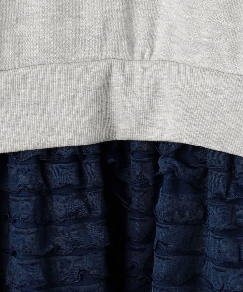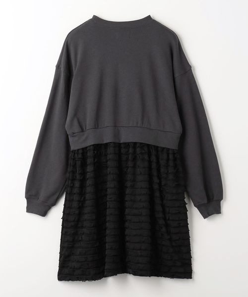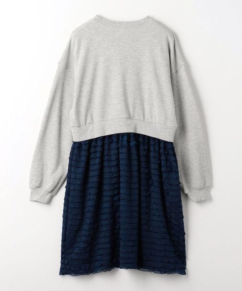 トップス部分はトレーナーのような感じでフロッキープリントのロゴ入り、スカート部分はフリルを用い、異素材の組み合わせが◎♪