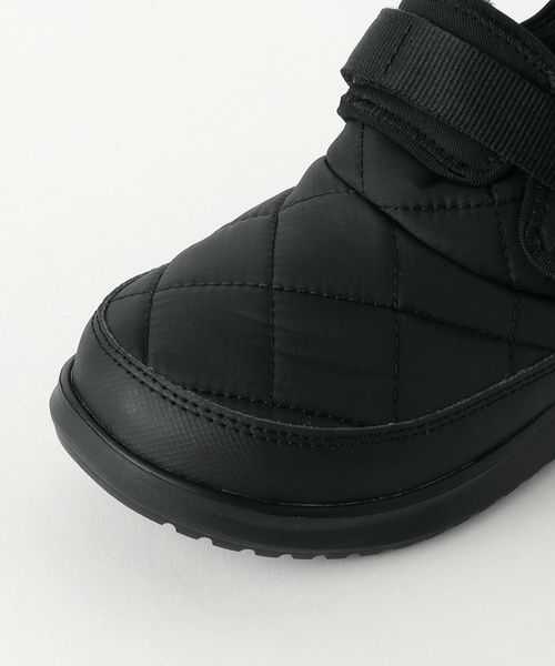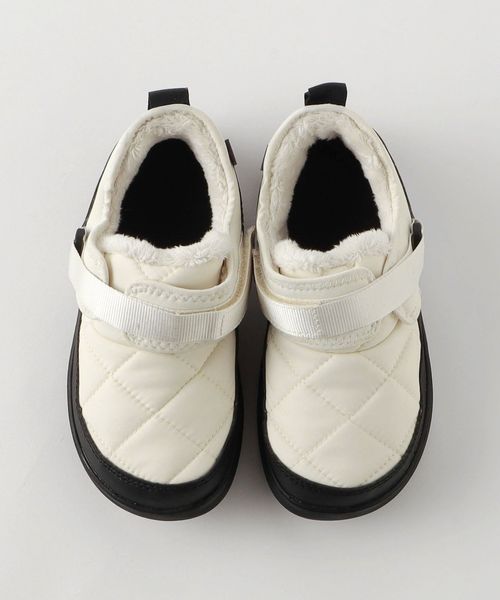 脱ぎ履きしやすくフィットの調整ができるテープのベルクロ構造のアッパーには内側に暖かい起毛素材を装備。