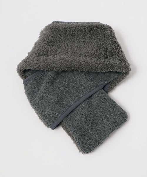 ふんわりとしたボアシャギーの表地とフリースの裏地が、寒さからしっかりと守ってくれるマフラー。