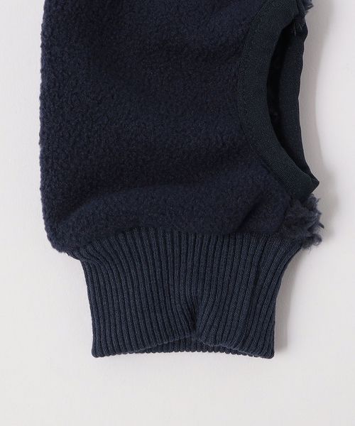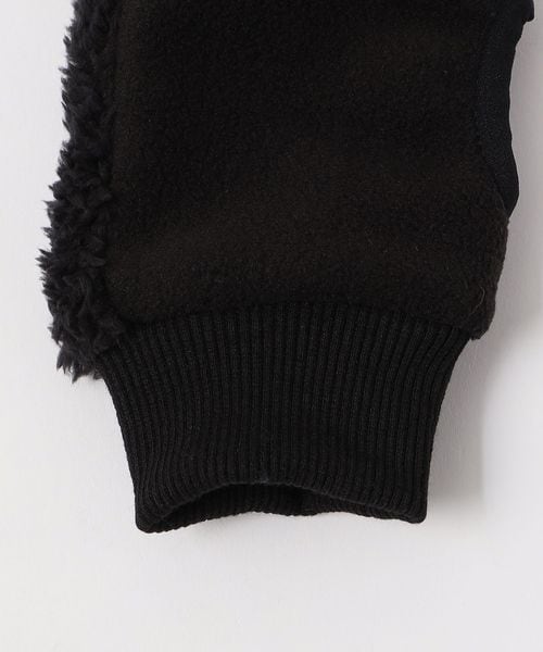 右左のフリースとシャギーボアが前後反転したデザインの指無しグローブ。